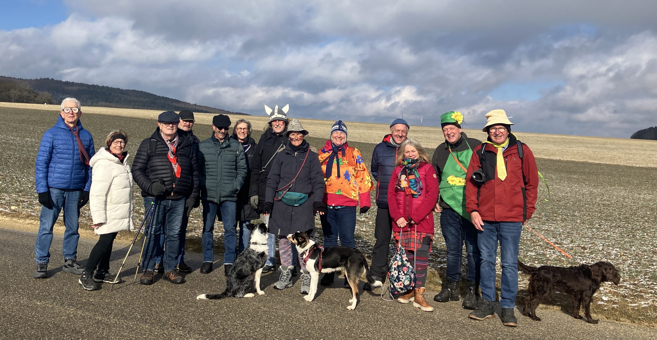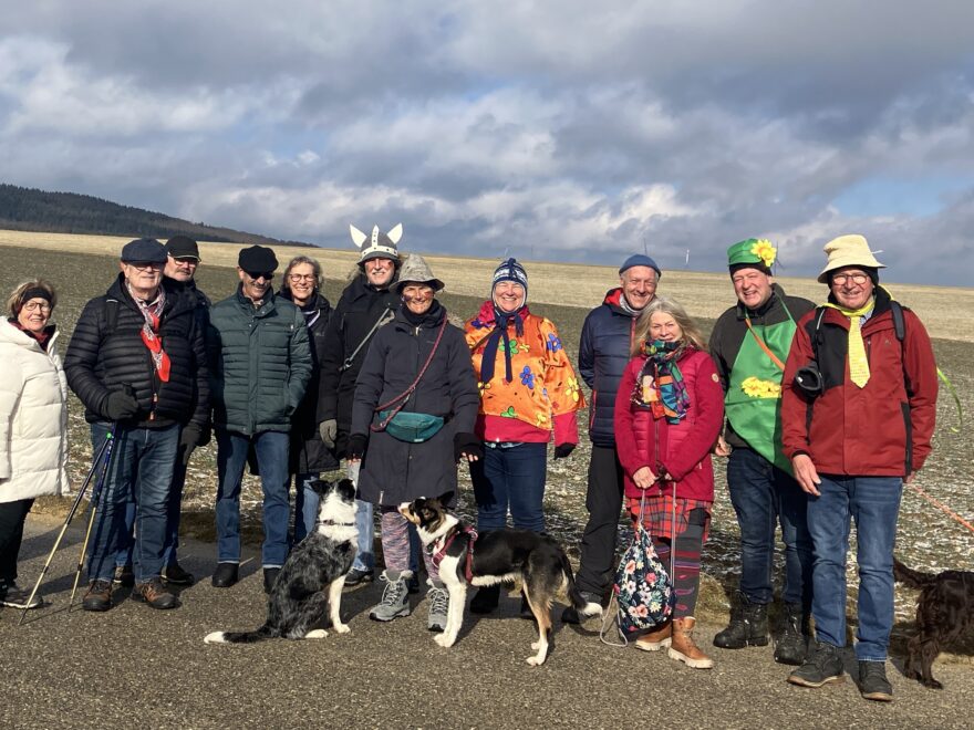 17 närrische Wanderfreunde, ausgestattet mit bunten Krawatten wanderten rund um Bartholomä mit anschließender Einkehr in der Küferstube.
