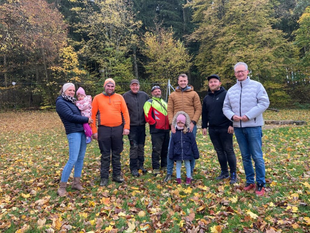 Bei der Eröffnung der Grillstelle und des Spielplatzes dankte Bürgermeister Thomas Kuhn den beiden Vereinen, den Bärenberg Schiddlern und dem Schwäbischen Albverein für ihren Einsatz bei der Neugestaltung. Unter der Regie vor allem von Familie Schmid wurde gemeinsam mit David Sorg und zahlreichen Helfern des Albvereins und der Bärenbergschiddler in mehreren Arbeitseinsätzen über zwei Jahre verteilt mehrere Spielgeräte und die Grillstelle neu errichtet. Der Platz wurde vom TÜV abgenommen und kann nun benutzt werden.