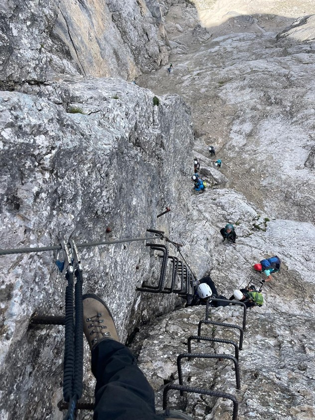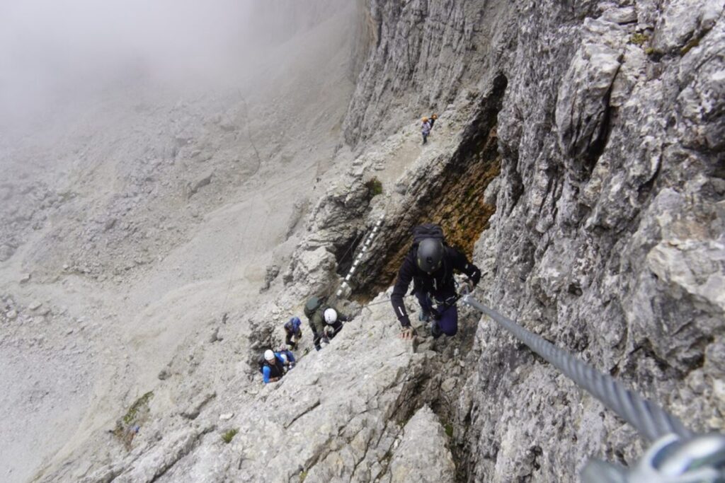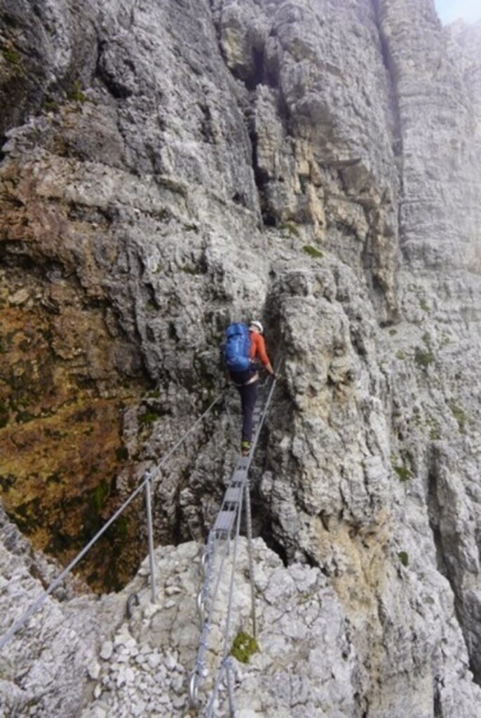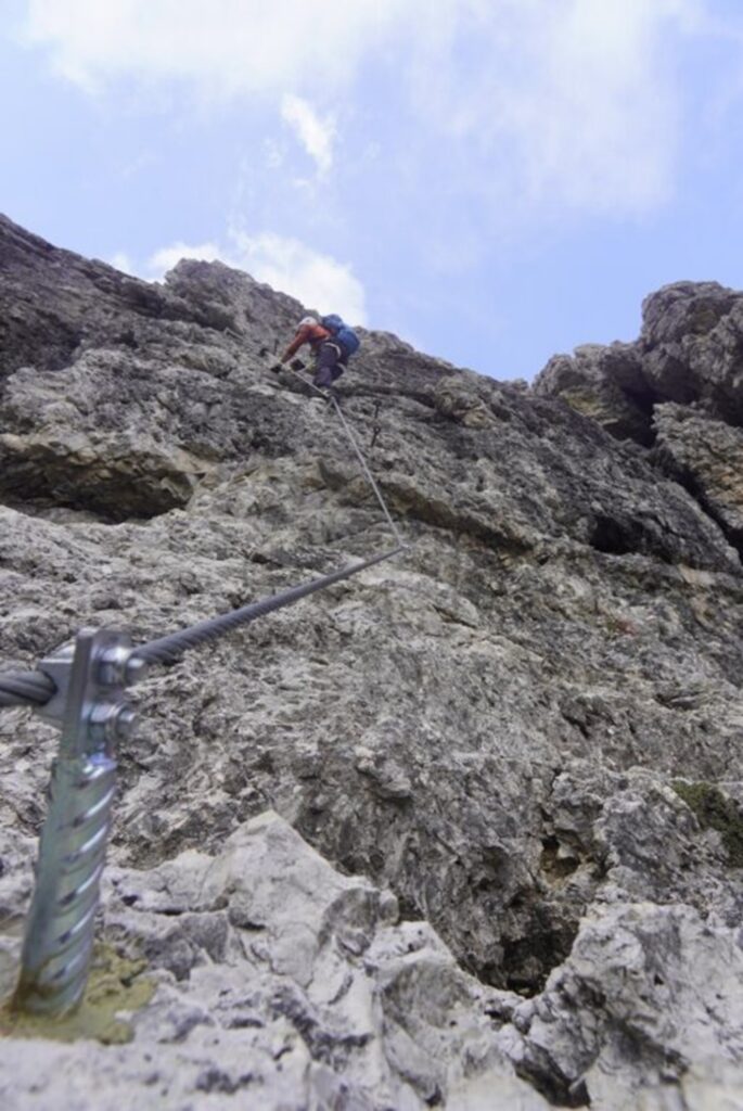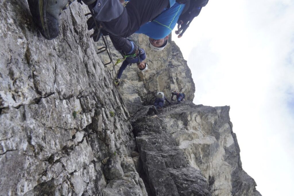 Von dort aus waren in 20 Minuten am Klettersteigeinstieg des Ferrate Die Finanzieri. Insgesamt ca. 700 Hm im Anstieg, davon 520 HM im Klettersteig. Der Klettersteig war sehr interessant, hatte doch ein paar „C“-Stellen auf dem Programm. Für die routinierten Klettersteigler waren es richtige Schmankerl, doch auch die anderen meisterten die Stellen mit Bravour.