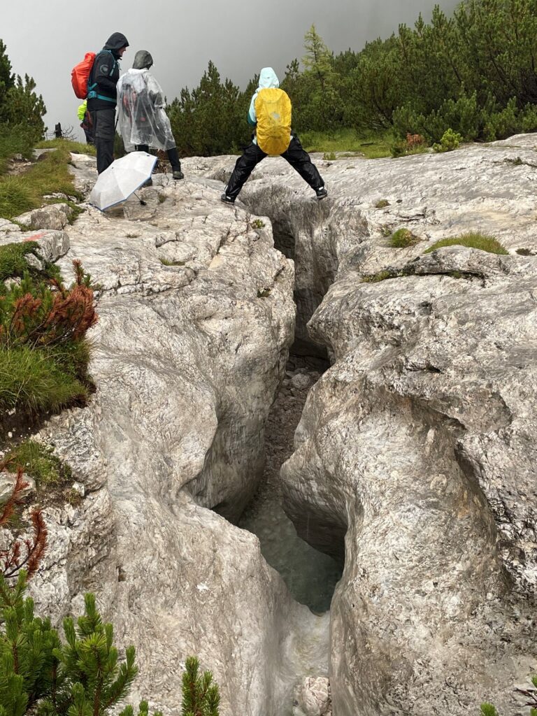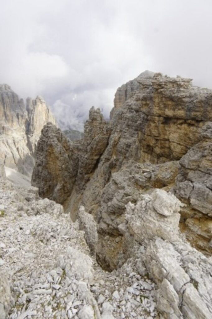 Der 2. Tag war dann leider so verregnet wie es der Wetterbericht angekündigt hatte. Unsere geplante Tour über den Eterna-Klettersteig auf den Serauta (Ostgipfel der Marmolada) war somit unmöglich. Doch die Gruppe verzagte nicht und unternahm eine normale Bergwanderung um die Hütte. Diese war auch ganz passabel und war eine ganz gute Alternative für diesen Regentag.