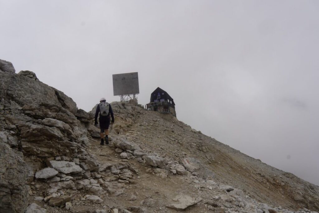 Aufgrund aufziehender dunkler Wolken haben wir unseren Gipfelaufenthalt bei der Fassa-Hütte verkürzt und stiegen wieder ab Richtung Seilbahn, jedoch auf einer anderen Route. Leider reichte es nicht mehr ganz bis zur Kostnerhütte – die Regentropfen haben uns eingeholt und wir wurden leicht nass bevor wir uns in der Hütte, nahe der Seilbahnstation wieder aufwärmen konnten. Für die angekündigte Wettervorhersage ist es noch doch eine ganz gute Tour geworden. Und landschaftlich war es Dolomitenfeeling pur.