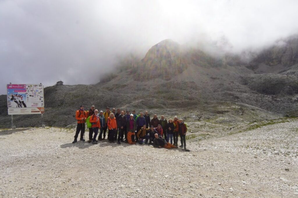 Zurück beim Bus mussten wir dann nochmals knapp 2 Stunden fahren, bis wir an unser Quartier für die nächsten 3 Nächte, der Dolomia-Hütte auf 2.074 HM am Fedaiasee direkt unterhalb des Marmoladamassivs, angekommen sind. Nach einem guten Abendessen ging die Gruppe in einen Nebenraum um bei Bier und Wein noch das ein oder andere Liedchen zu singen.