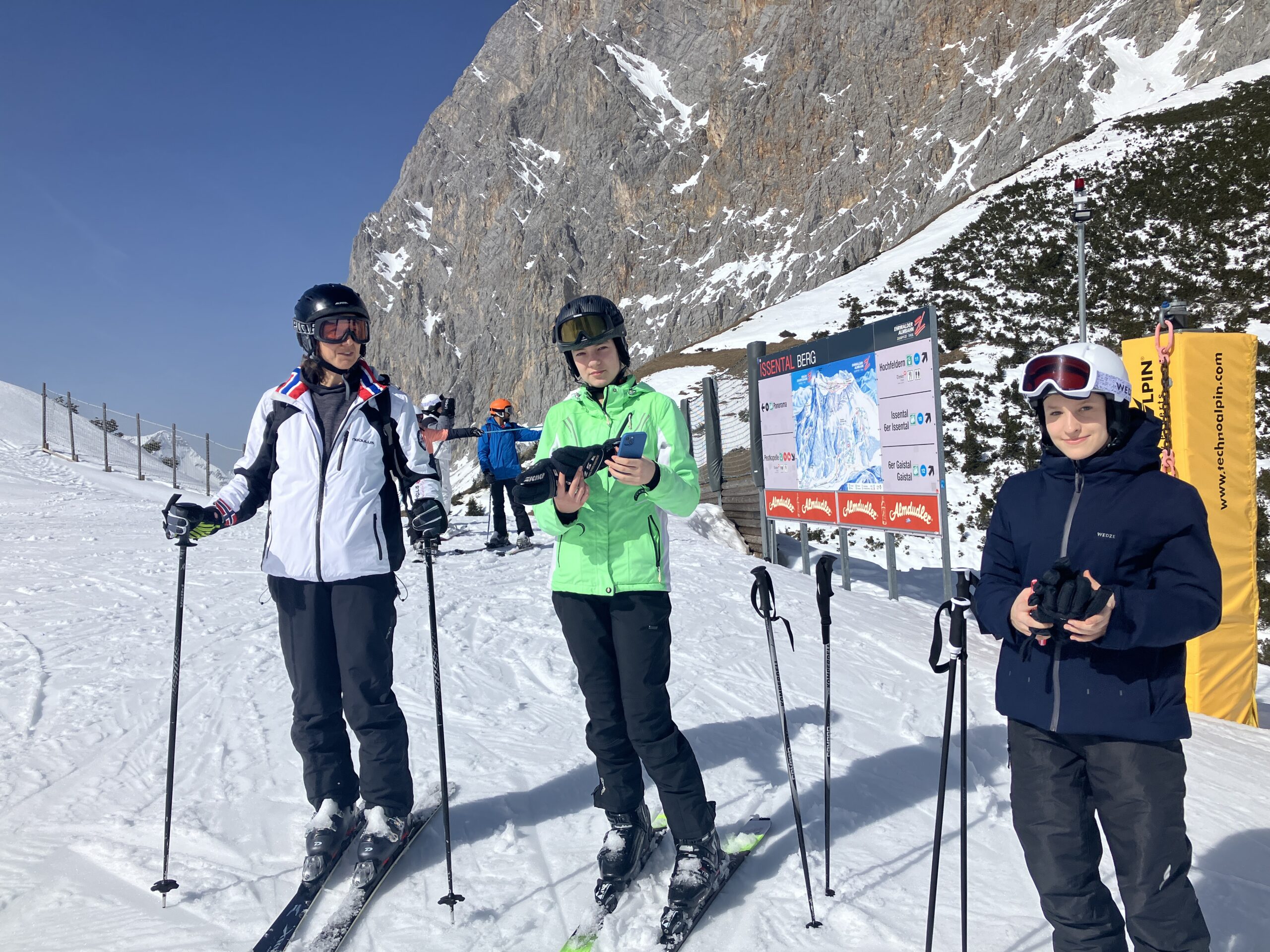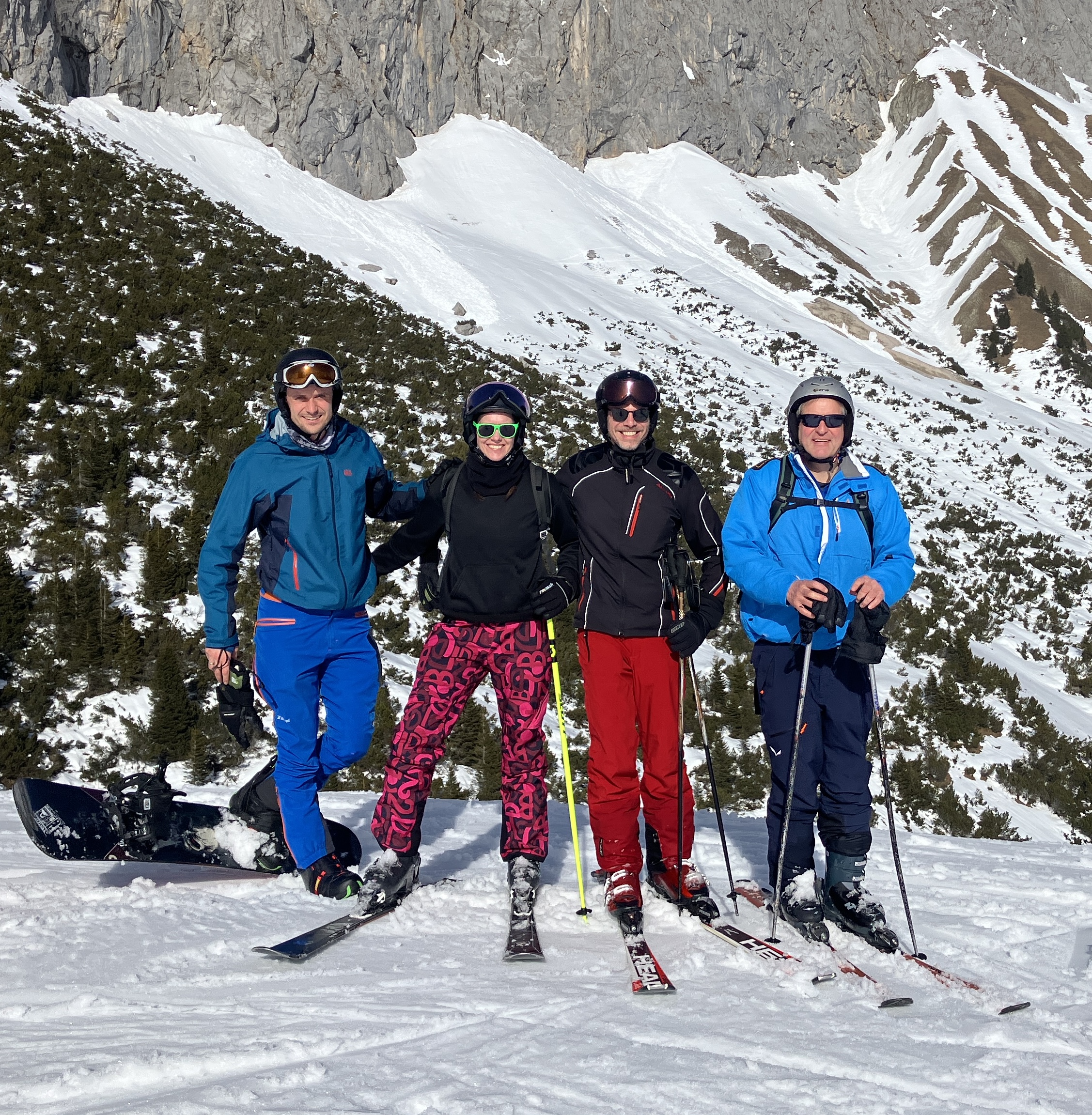 Pünktlich um 6:00 Uhr startete der Bus mit den Skifahrern des SAV und der Radsportfreunde auf dem Hof der Fa. Götzinger in Richtung Süden. Ziel war das Skigebiet Ehrwalder Alm, wo schönes Wetter lockte. Leider musste die Reisegruppe kurz vor Lermoos eine unfreiwillge Pause einlegen. Ein Stau infolges eines Unfalls auf der Strecke sorgte dafür, dass der Spaß im Schnee erst gegen Mittag starten konnte. Bie schönem Wetter und der Jahreszeit geschuldeten hohen Temparaturen war der Schnee zwar nicht in allerbestem Zustand, dennoch konnten alle Pisten bis zum Liftschluss befahren werden. Aufgrund des durcheinandergewirbelten Zeitplans bei der Herfahrt und der notwendigen Einhaltung des Tageslimits des Busfahrers wurde das eingeplante Aprés Ski in den Bus auf die Heimfahrt verlegt.