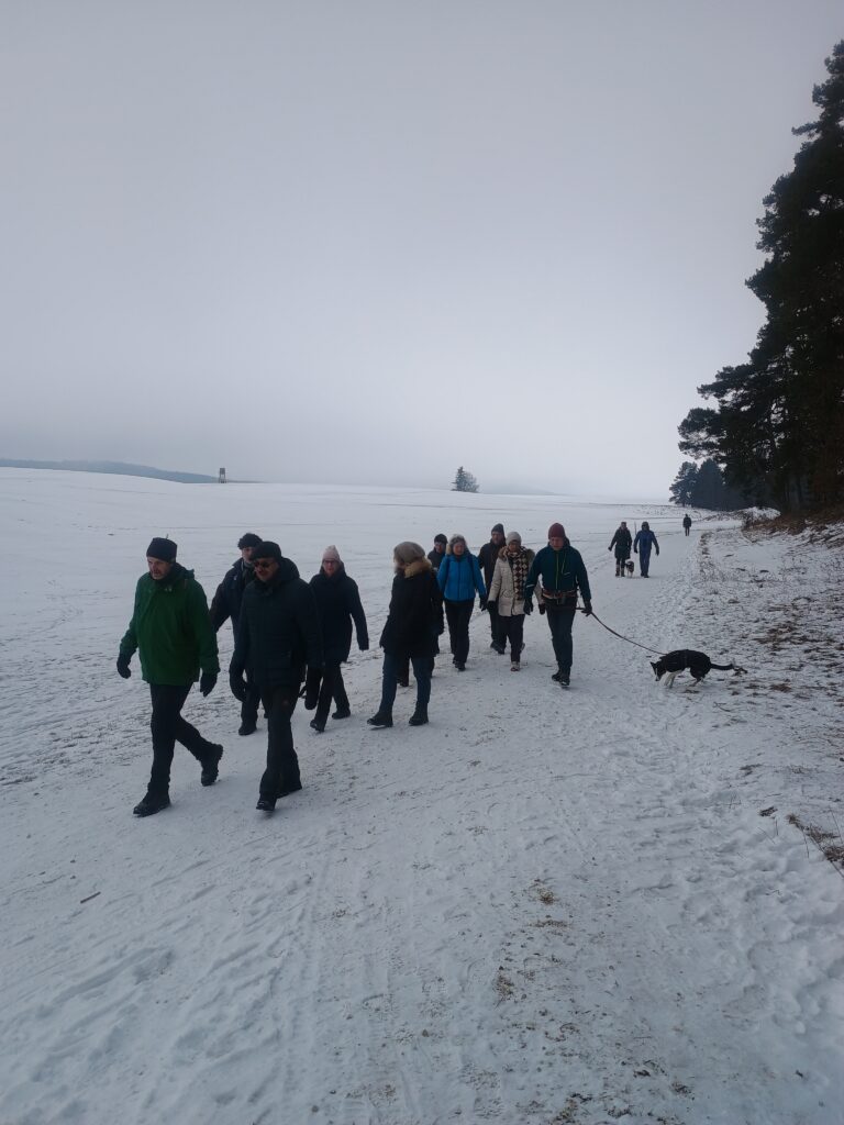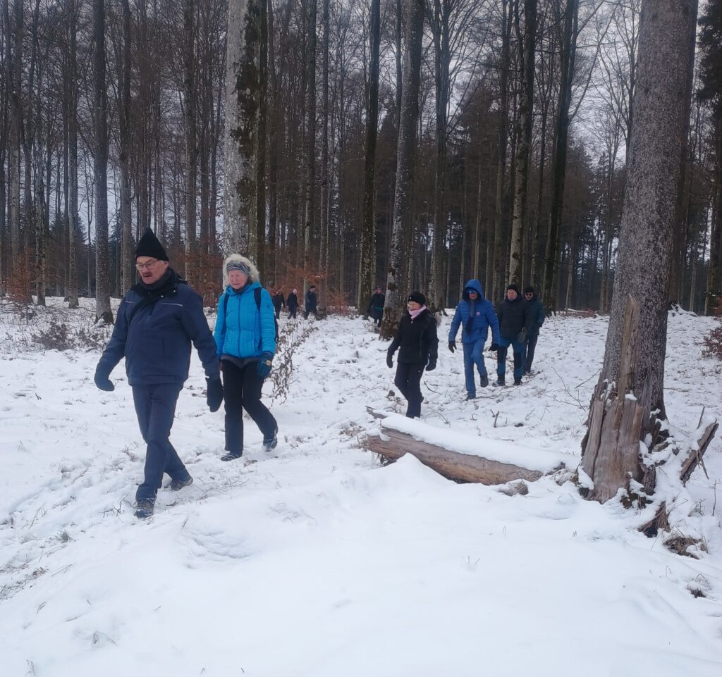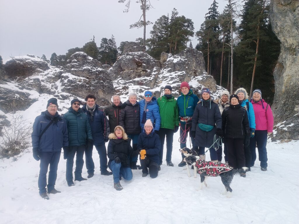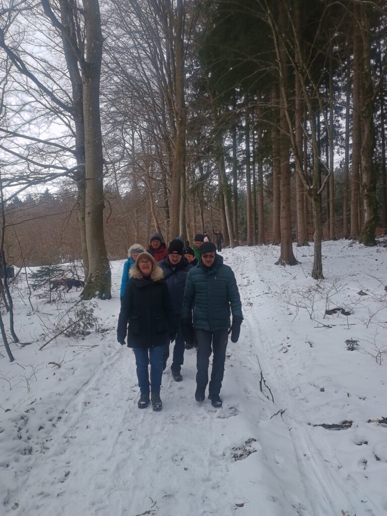 Bei frischen -4 °C und bedecktem Himmel sind wir zu unserer Traditionellen Dreikönigswanderung gestartet. Über den verschneiten Waldweg am Bärenberg, am Dorfrand und über Feldwege wanderten wir zu den überzuckerten Felsen ins obere Wental. Hinter der Wirtschaft geht es hoch zum winterlichen Kollmannswald und auf den Wirtsberg. Mit Blick auf das verschneite Bartholomä endet unsere schöne Wintertour nach gut 10 km.